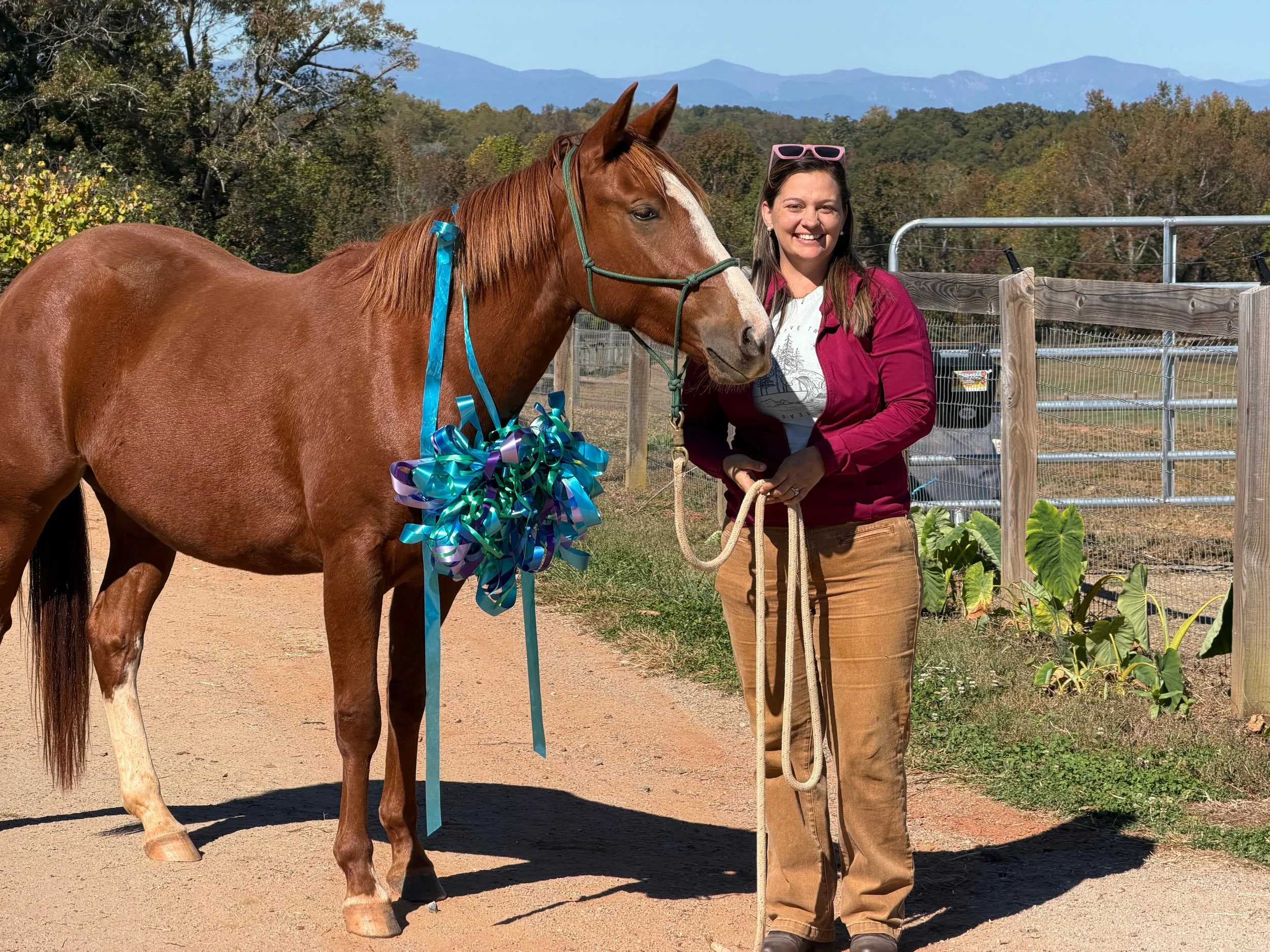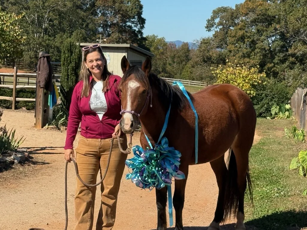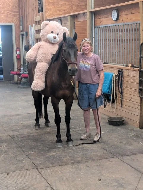 Bali arrived with the first herd of feral horses from the kill pen in Texas. He was a 3.5 year old feral stallion, but after a year of living at REIN Rescue, Bali has turned into a wonderful horse who loves attention and his mom, Joy.